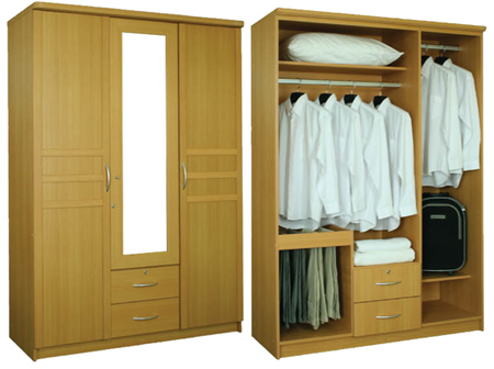 เฟอร์นิเจอร์ไม้ : ตู้เสื้อผ้า 3 บาน (กระจก) "ลินดา"